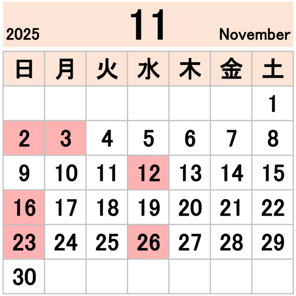 ※ピンクのマスが休診日となります💁♀️